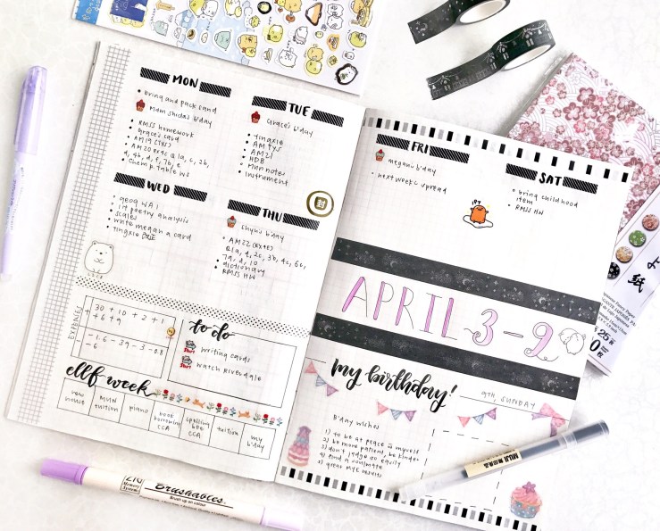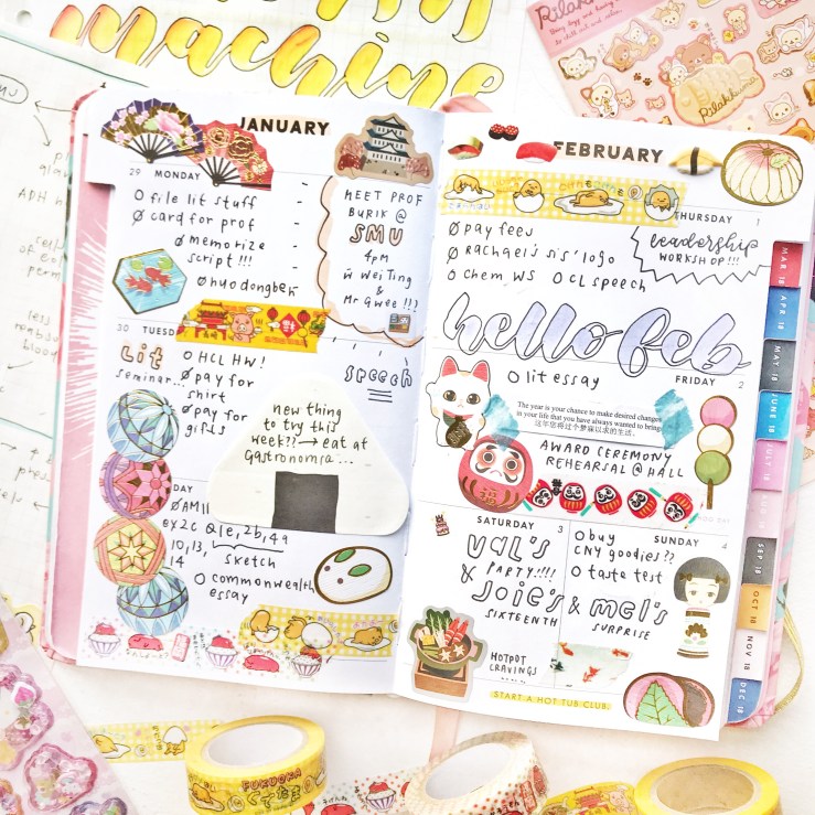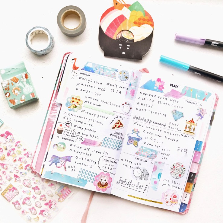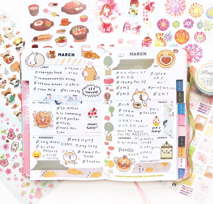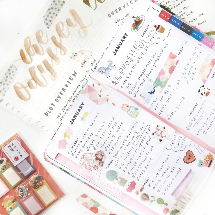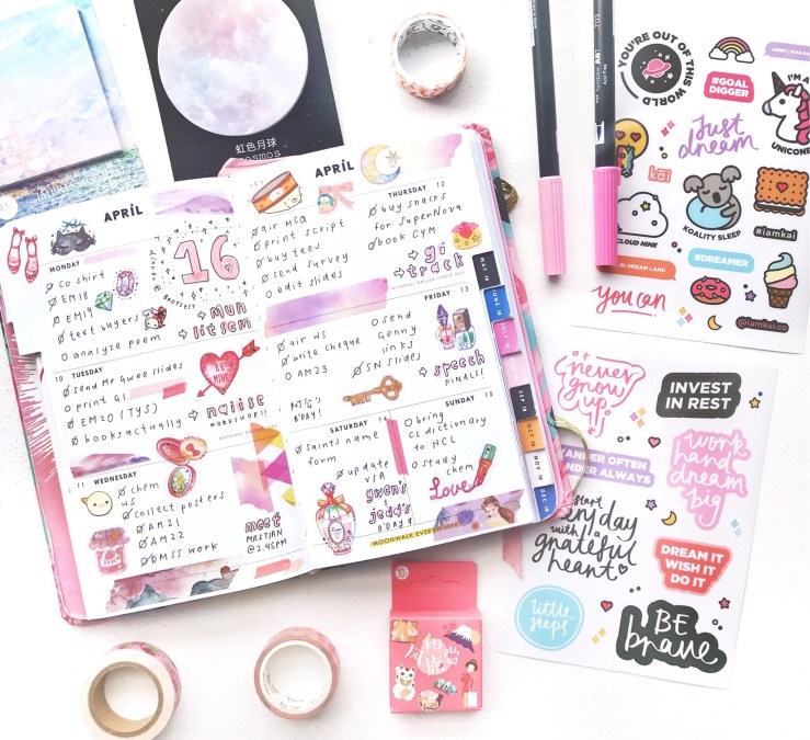 items: bujo, stickers, washi tapes