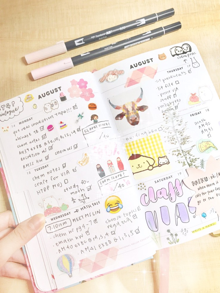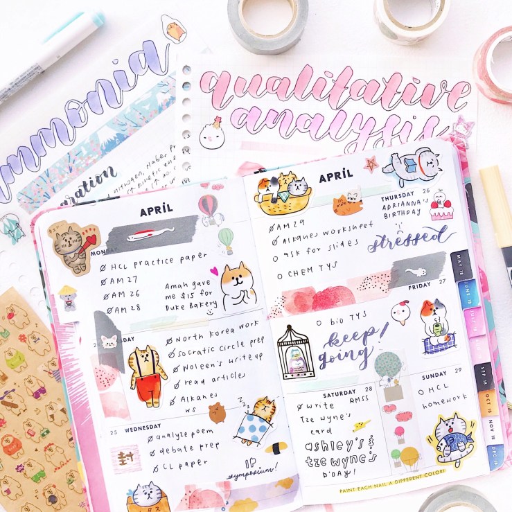 items in this picture: bujo, rude cat phone case, bunny sticker markers