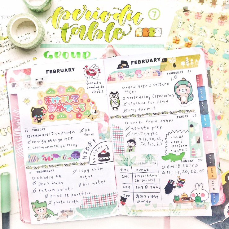 items: bujo, hello kitty bubble stickers, gudetama washi tapes (fukuoka edition), biology notes, rilakkuma stickers