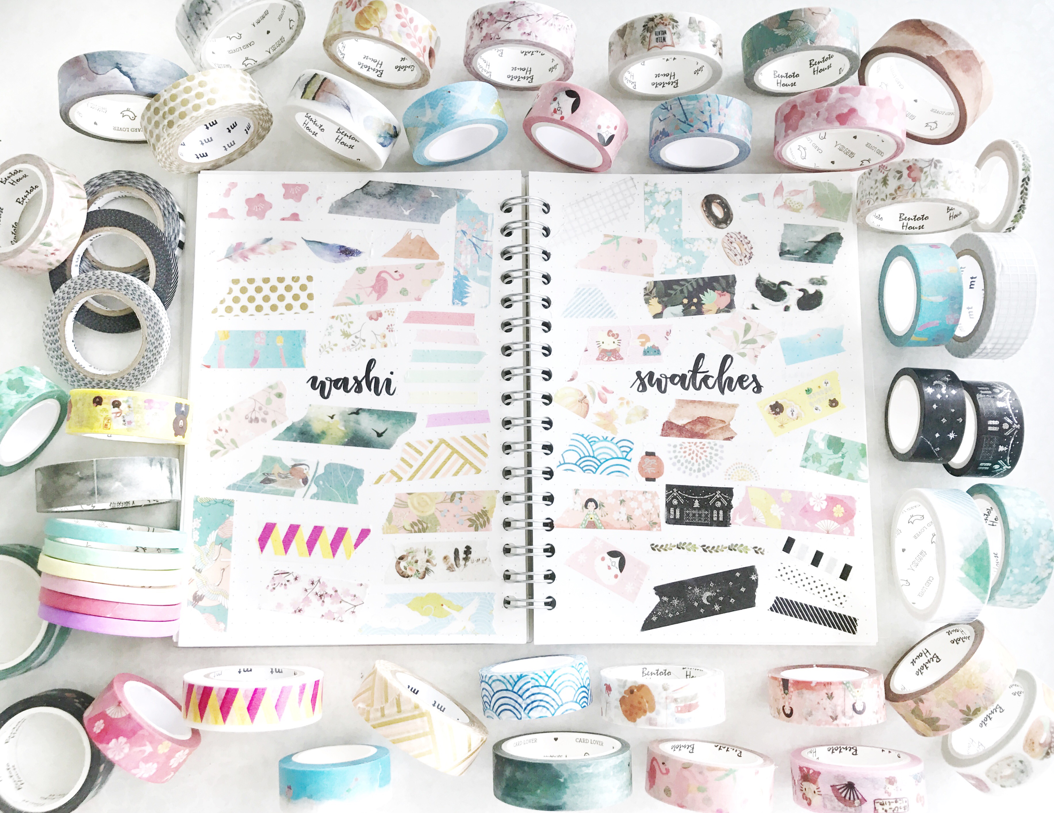 items in this picture: 2017 mood board in my bujo, washi tape collection